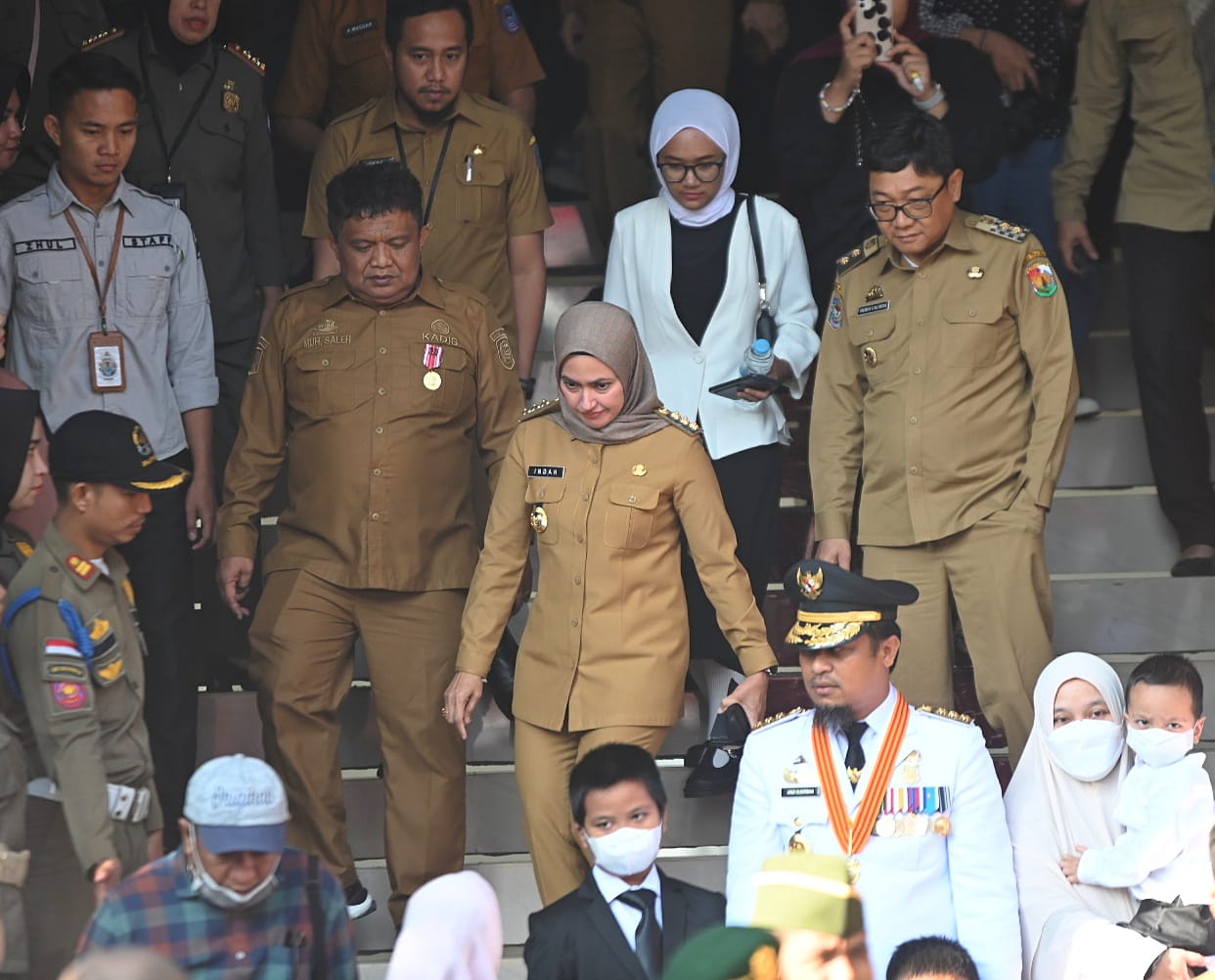 REPUBLIKNEWS.CO.ID,MAKASSAR — Bupati Luwu Utara, Indah Putri Indriani menghadiri Apel Besar Akhir Masa jabatan Andi Sudirman Sulaiman sebagai Gubernur Sulawesi Selatan (Sulsel) di Lapangan Upacara Kantor Gubernur Sulsel, Senin (4/9/2023).
