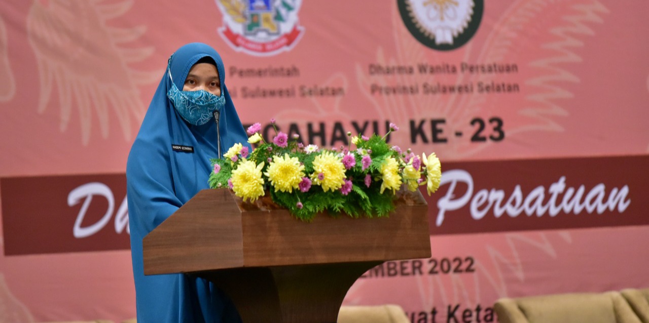 Di tempat yang sama, kepala Dinas Pemberdayaan Perempuan Perlindungan Anak Pengendalian Penduduk dan Keluarga Berencana (DP3A Dalduk KB) Andi Mirna, membacakan sambutan Gubernur Sulsel Andi Sudirman Sulaiman Sebagai organisasi perempuan terbesar dan mitra strategis pemerintah, DWP dapat semakin berperan aktif dan berkontribusi dalam pembangunan di Prov.Sulsel. Sesuai dengan tema peringatan HUT ke 23 DWP Tahun 2022 yaitu “Membangun Perempuan Cerdas untuk Memperkuat Ketahanan Keluarga di Era Digital”.