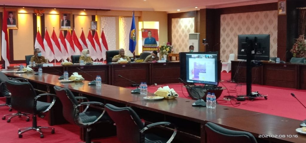 Gubernur Sultra Ali Mazi beserta jajarannya dalam mengikuti acara peluncuran Laporan Tahunan Ombudsman RI Tahun 2020 secara virtual. Foto: Akbar Tanjung