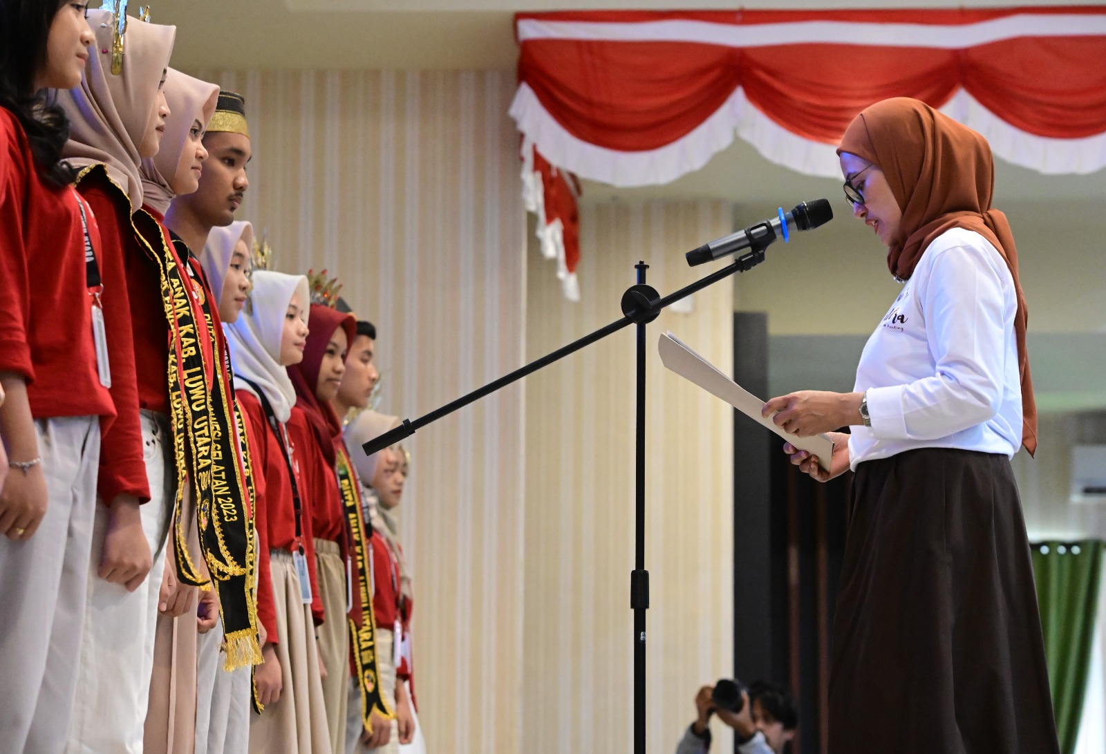 Hal itu disampaikan Indah saat menghadiri Peringatan Hari Anak Nasional Tingkat Kabupaten Luwu Utara di Aula Lagaligo Kantor Bupati Luwu Utara, Sabtu (10/8/2024).