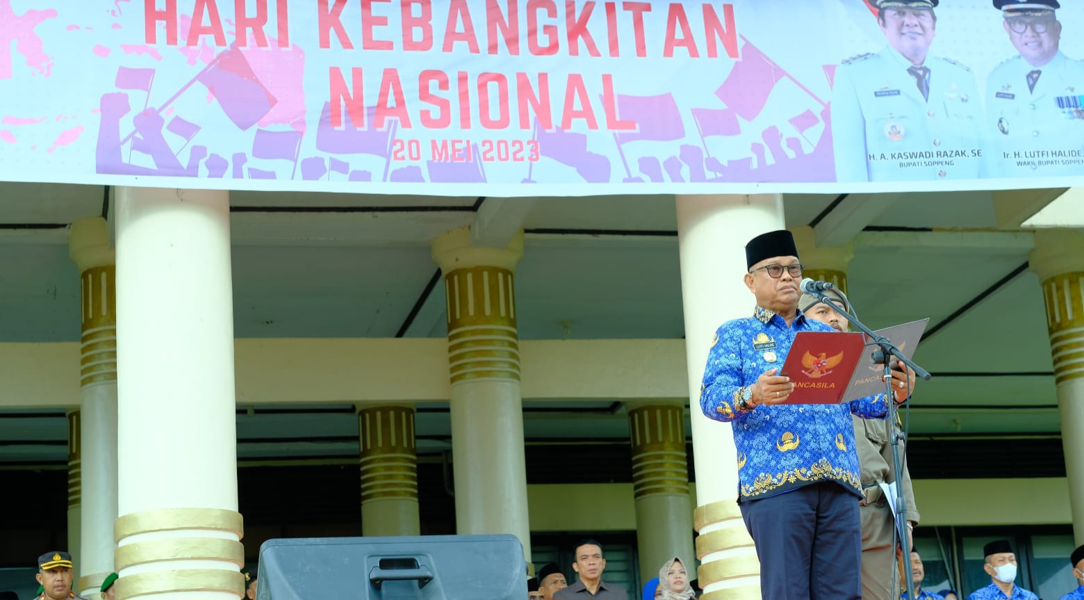 REPUBLIKNEWS.CO.ID, SOPPENG — Memperingati hari Kebangkitan Nasional ke-115 tahun 2023 di Halaman Kantor Bupati Soppeng, Senin (22/05/2023), Wakil Bupati Soppeng Lutfi Halide membacakan sambutan seragam Pelaksana Tugas Menteri Komunikasi dan Informatika Mahfud MD.