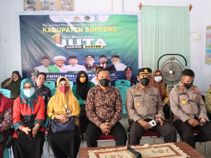 REPUBLIKNEWS.CO.ID, SOPPENG — Menyambut perayaan Hari Raya Idul Fitri 1443 Hijriyah tahun 2022. Secara virtual Polri bersama PBNU dan Kemenag melaunching vaksinasi Booster.