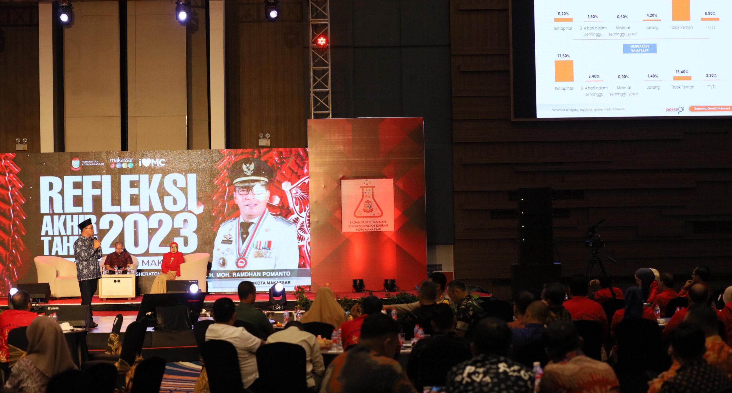 Pemaparan survei tersebut dilaksanakan pada kegiatan Refleksi Akhir Tahun 2023 Pemerintah Kota Makassar di Hotel Four Points by Sheraton, Jalan Andi Djemma, Makassar, Rabu (27/12/2023).