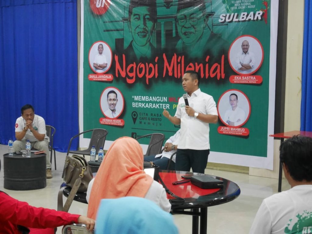 REPUBLIKNEWS.CO.ID, MAMUJU – Relawan Pengusaha Muda Nasional (Repnas) untuk Pasangan Calon Presiden dan Wakil Presiden, Joko Widodo dan Ma’ruf Amin, Provinsi Sulawesi Barat menggelar dialog publik dengan tema “membangun milenial yang berkarakter pengusaha”, berlangsung di Cita Rasa Cofe And Resto, kota Mamuju, Kamis (28/03/2019) malam.