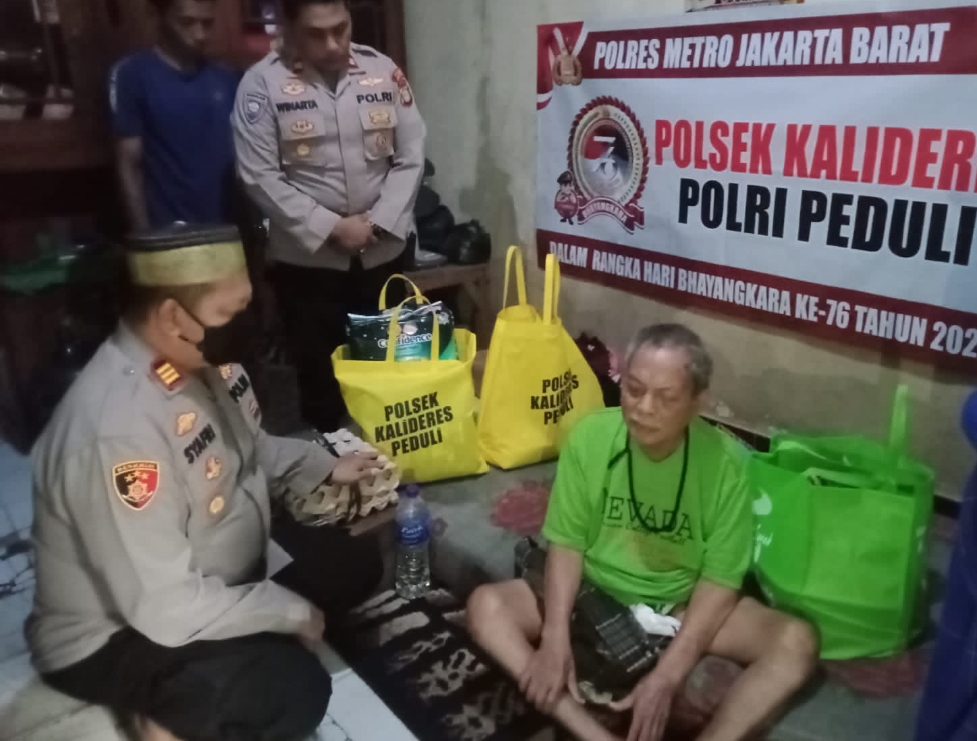 Dalam kunjungan itu ada pemberian bantuan oleh Kapolsek Kalideres AKP Syafri Wasdar.