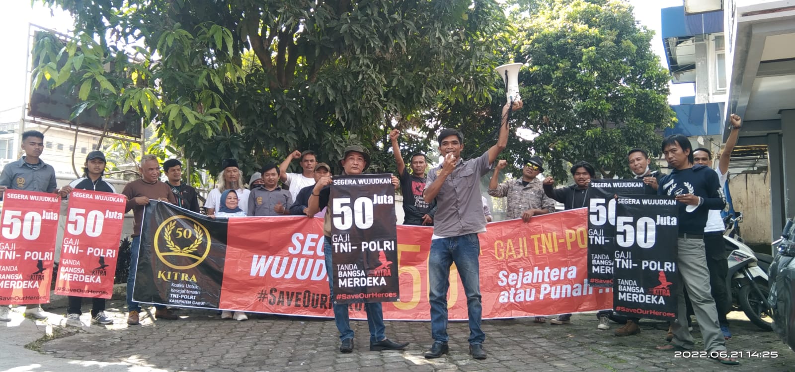 REPUBLIKNEWS.CO.ID, GARUT — Koordinator Daerah KITRA Kabupaten Garut mendesak pemerintah pusat segera merealisasikan tuntutan kenaikan 50 juta Gaji TNI Polri dan mengajak seluruh elemen masyarakat Garut untuk bahu membahu menyuarakan kesejahteraan TNI Polri.
