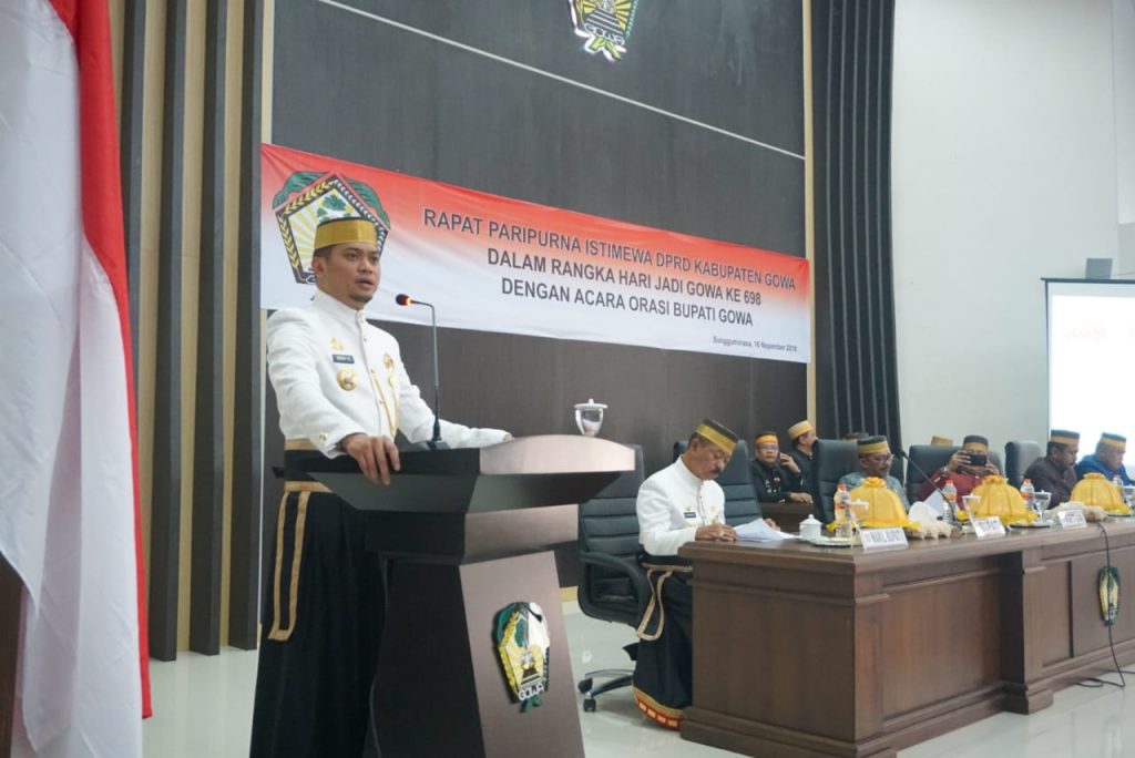 REPUBLIKNEWS.CO.ID, GOWA — Dalam Rangka menyambut Hari Jadi Kabupaten Gowa ke-698, Bupati Gowa, Adnan Purichta Ichsan, menyampaikan orasinya pada sidang Paripurna Istimewa, di Ruang Rapat Paripurna DPRD Kab Gowa, Jumat (16/11/2018) sore.
