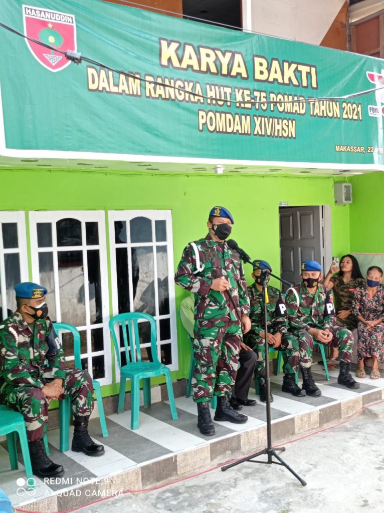 REPUBLIKNEWS.CO.ID, MAKASSAR– Dalam rangkaian kegiatan Karya Bakti HUT Polisi Militer Angkatan Darat (POMAD) ke 75 tahun 2021, Komandan Detasemen Polisi Militer (DANDENPOM) XIV/ 4 Makassar, Letnan Kolonel CPM Tabi Pasenggong yang juga putra daerah asal Kabupaten Luwu, menyerahkan bantuan rehab rumah, Rabu (28/4/2021) pagi.