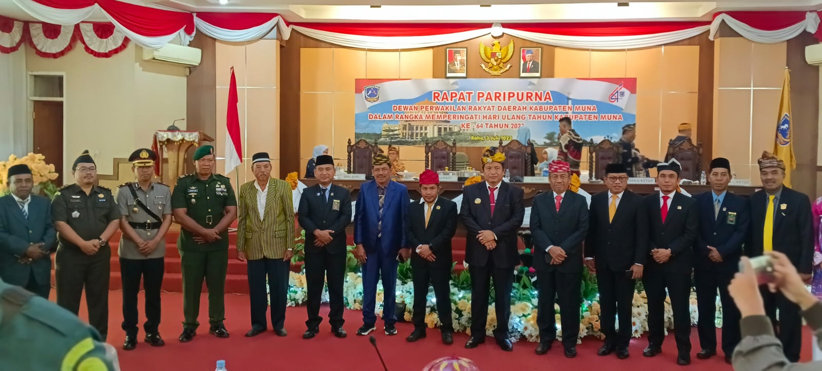 REPUBLIKNEWS.CO.ID, MUNA — Dewan Perwakilan Rakyat Daerah (DPRD) bersama Pemerintah Kabupaten (Pemkab) Muna mengelar rapat paripurna peringatan hari ulang tahun (HUT) Kabupaten Muna ke- 64, di aula utama gedung DPRD Muna, Senin (03/07/2023) kemarin.