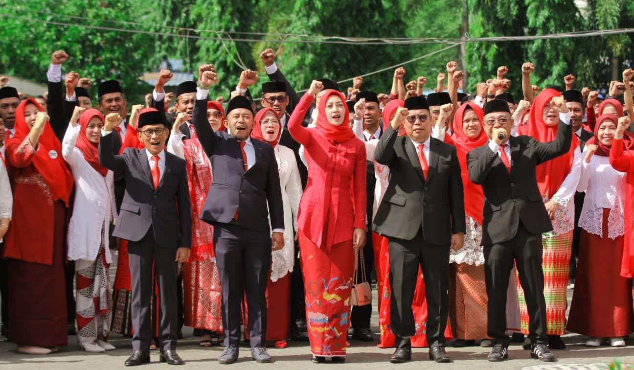 Setelah melakukan upacara bersama Wali Kota dan jajaran Pemkot Makassar di Anjungan Pantai Losari, Direktur Utama Beni Iskandar langsung bergabung dan bertindak sebagai Pembina Upacara dengan Membacakan Teks Proklamasi.