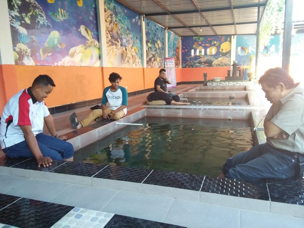 Sebut, Idelana Fish Therafy, yang menyiapkan 3 kolam ikan garapura untuk merendam kaki selama beberapa menit.