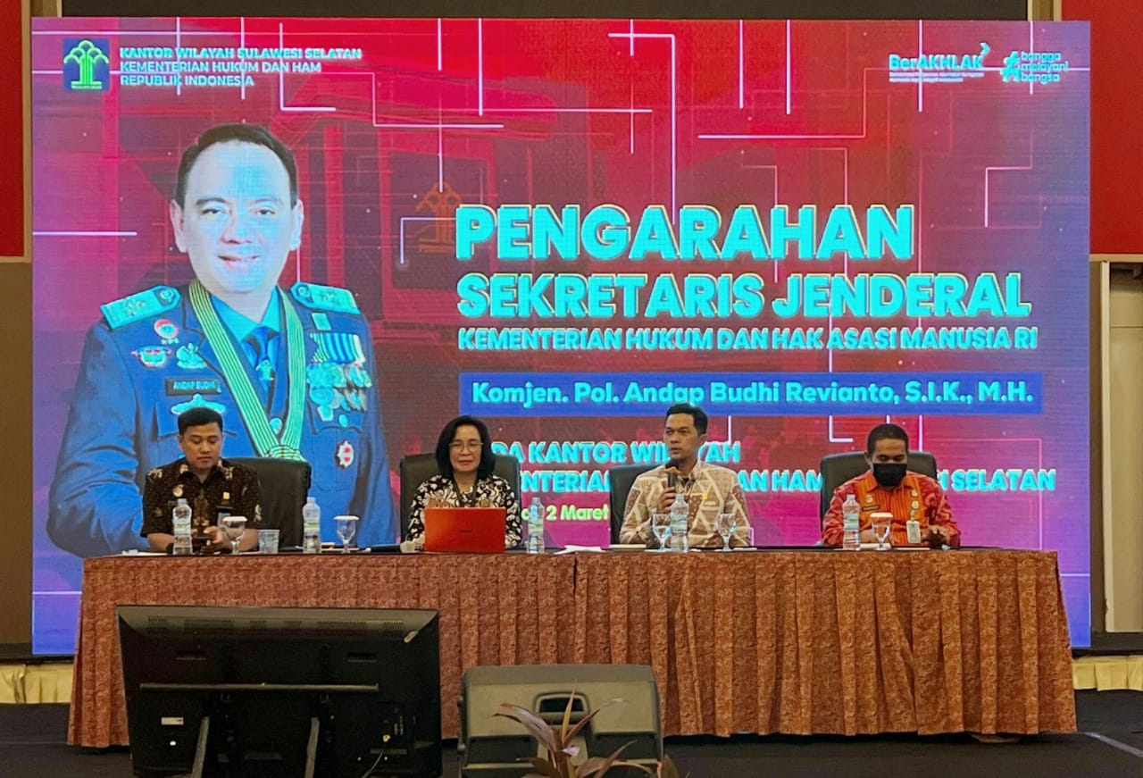 REPUBLIKNEWS.CO.ID, MAKASSAR — Dalam penguatan peningkatan kapasitas petugas pengamanan di lingkup lapas dan rutan Kanwil Kemenkumham Sulsel diminta untuk berkerja dengan mengedepankan nilai PASTI (Profesional, Akuntabel, Sinergi, Transparan dan Inovatif). Hal ini didorong sejumlah narasumber dalam pertemuan yang berlangsung di Hotel Claro Makassar.