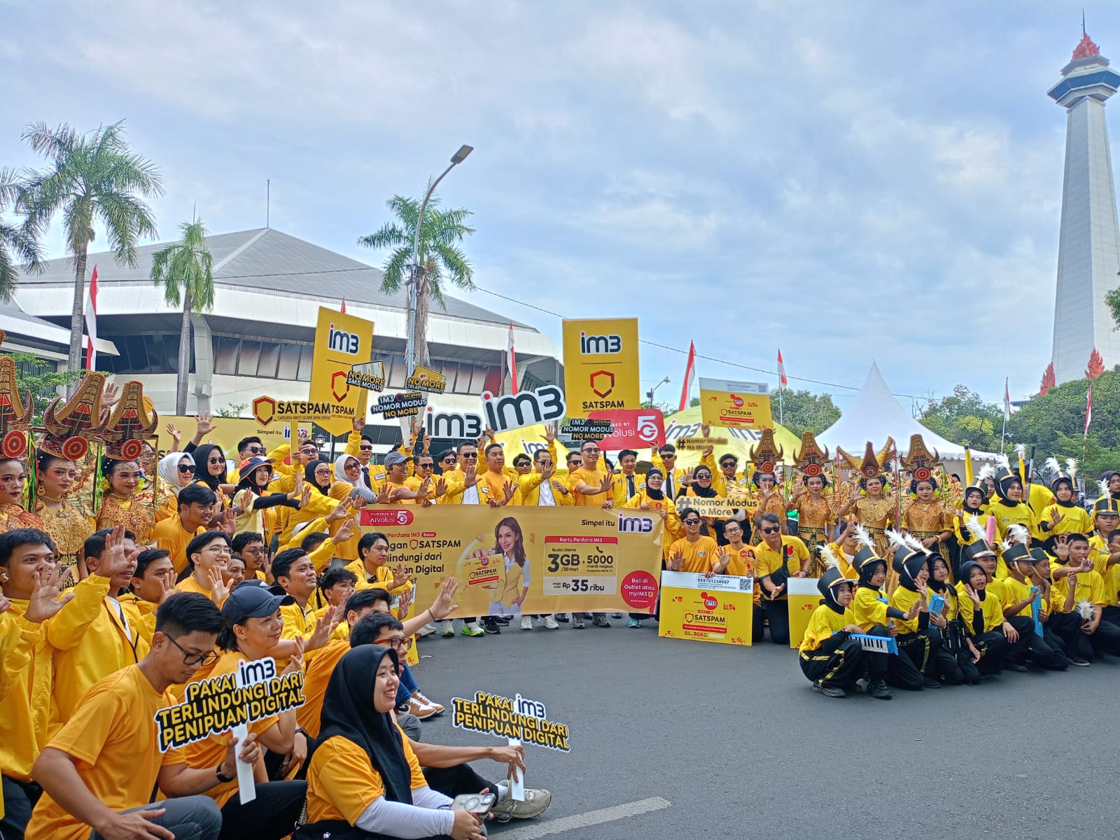Dalam parade tersebut mengampanyekan “Nomor Modus No More” sebagai bentuk edukasi publik tentang bahaya scam dan spam serta mengenalkan langsung fitur IM3 SATSPAM sebagai solusi perlindungan digital otomatis