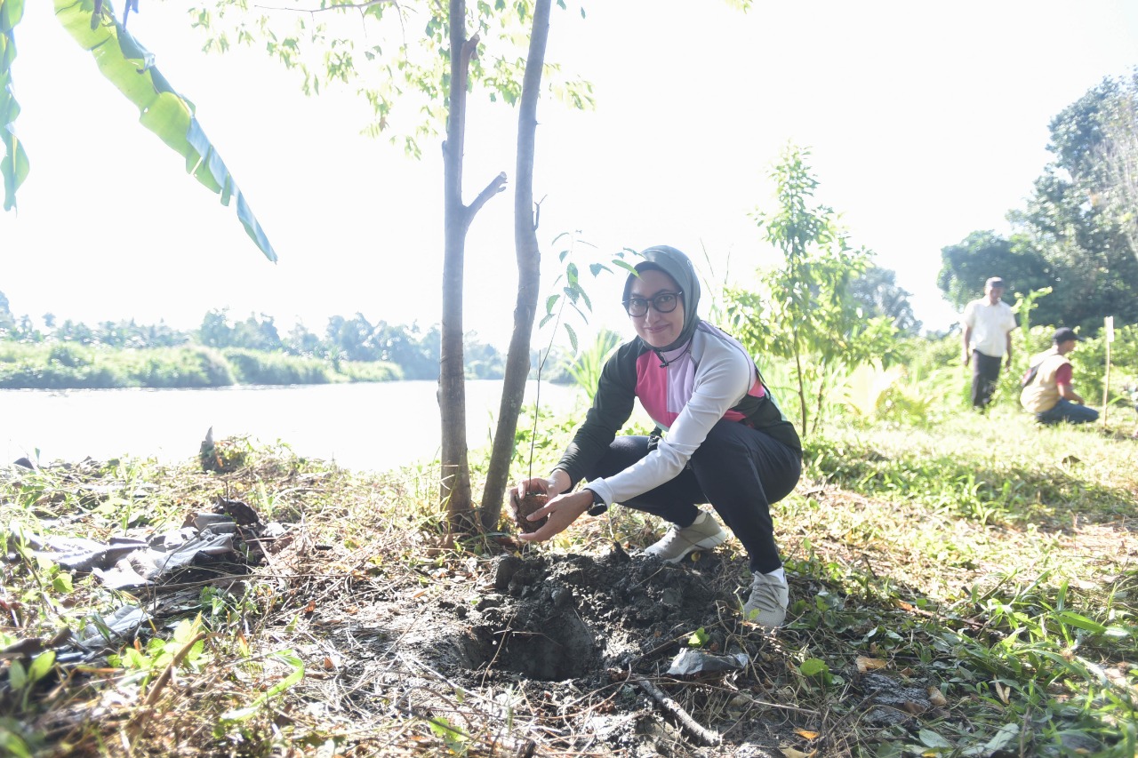 Tiba di Desa Toradda, bupati perempuan pertama di Sulsel itu memimpin penanaman 200 bibit pohon di bantaran Sungai Baliase.