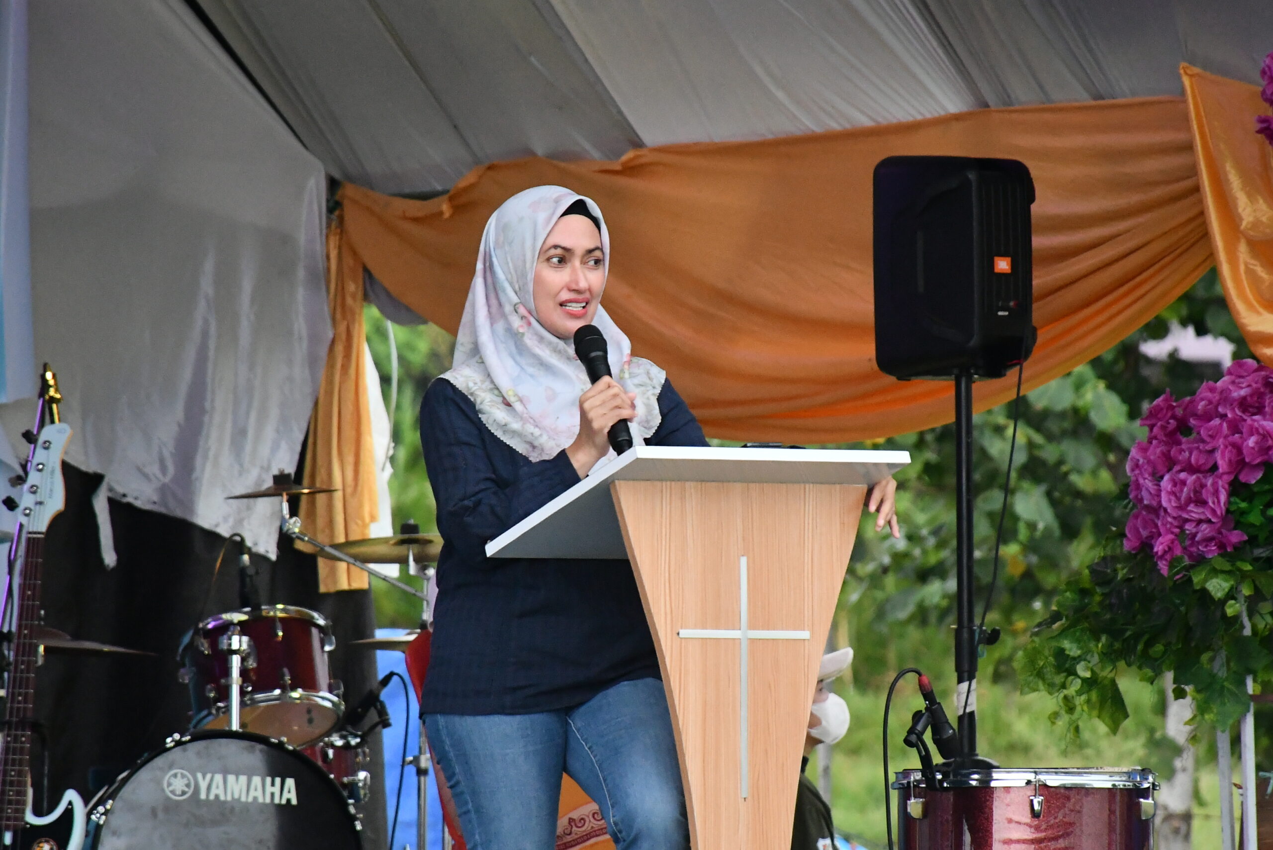 Bupati Luwu Utara Indah Putri Indriani saat membuka Kamp Pemuda PPGT Klasis Sangbualambe di Kecamatan Sabbang.