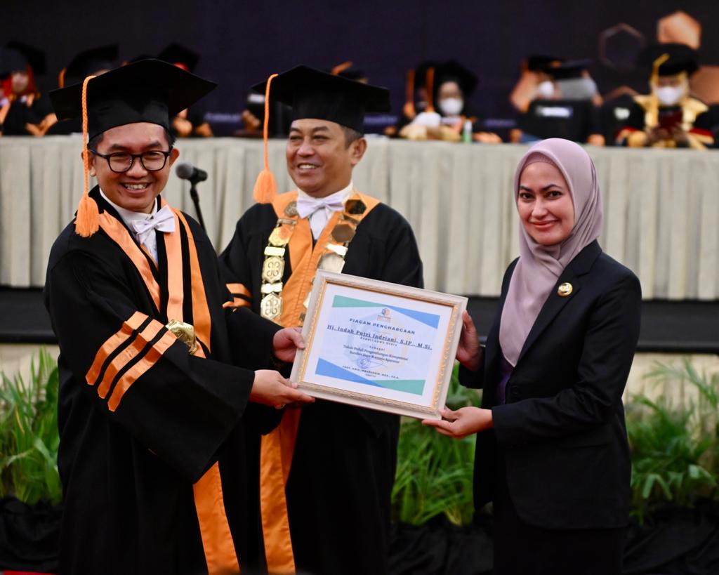 REPUBLIKNEWS.CO.ID, MAKASSAR — Bupati Luwu Utara, Indah Putri Indriani dianugerahi tokoh peduli pengembangan Kompetensi SDM Aparatur. Penghargaan diserahkan di sela-sela wisuda Politeknik STIA LAN di Sandeq Ballroom Hotel Claro Makassar.