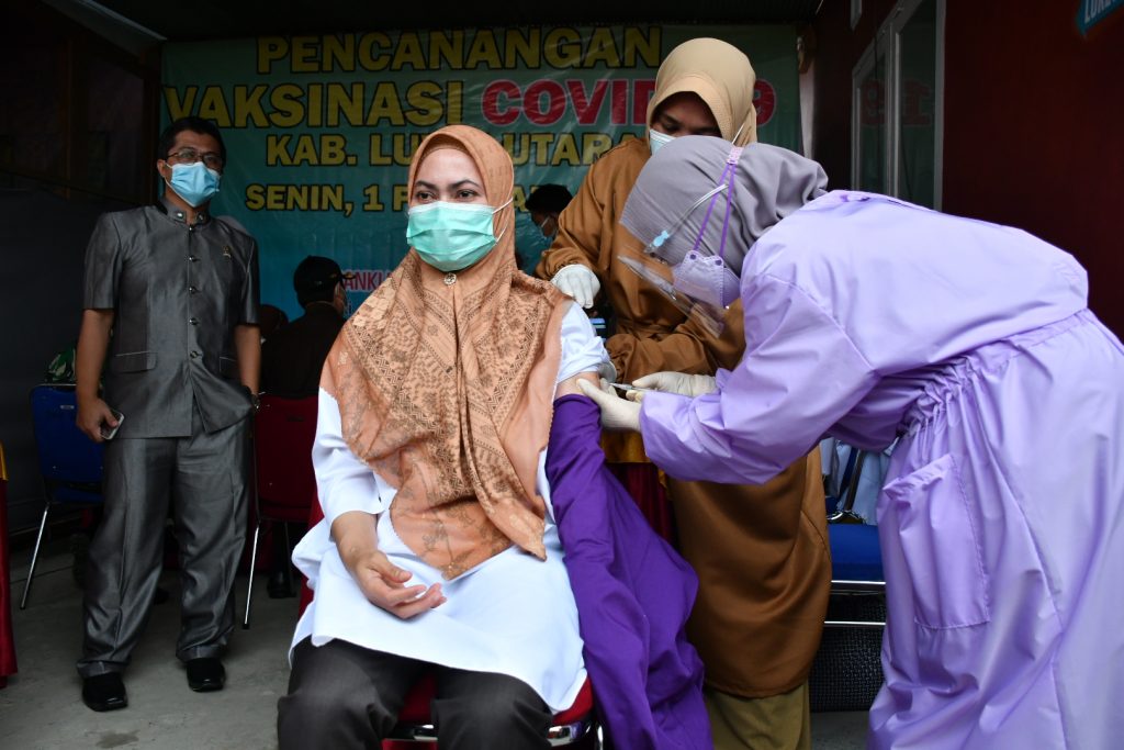 Suntikan yang dilakukan Dokter Spesialis Penyakit Dalam, dr. Musmiani tersebut sekaligus menjadi penanda pelaksanaan vaksinasi perdana bagi Kabupaten Luwu Utara.