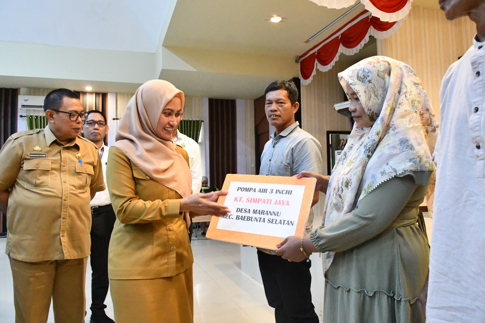“Kebutuhan akan pompa atau pompanisasi di Kabupaten Luwu Utara masih sangat tinggi. Di mana total luas sawah yang masih membutuhkan pompanisasi seluas 24.855 hektare dari total luas sawah 29.175,55 hektare,” ucap bupati perempuan pertama di Sulsel itu.