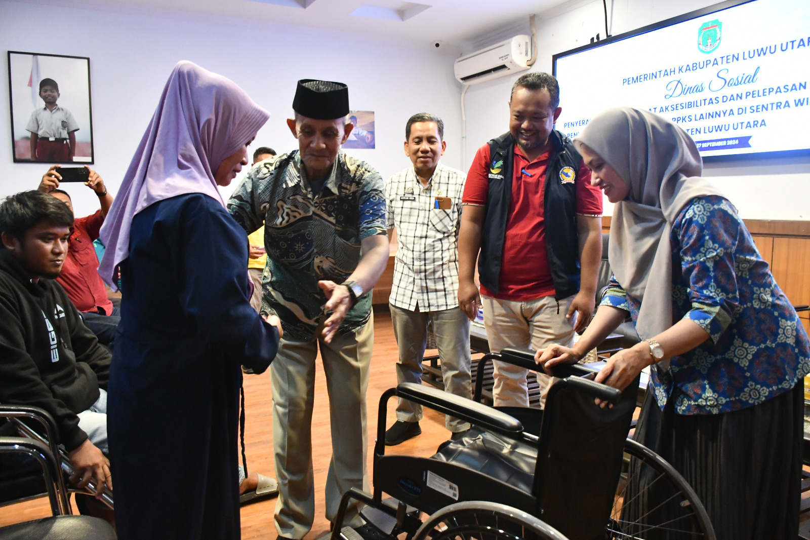 Bantuan yang terselenggara atas kerjasama Pemerintah Kabupaten Luwu Utara melalui Dinas Sosial bersama Sentra Wirajaya Makassar tersebut diserahkan secara langsung Bupati Luwu Utara, Indah Putri Indriani.