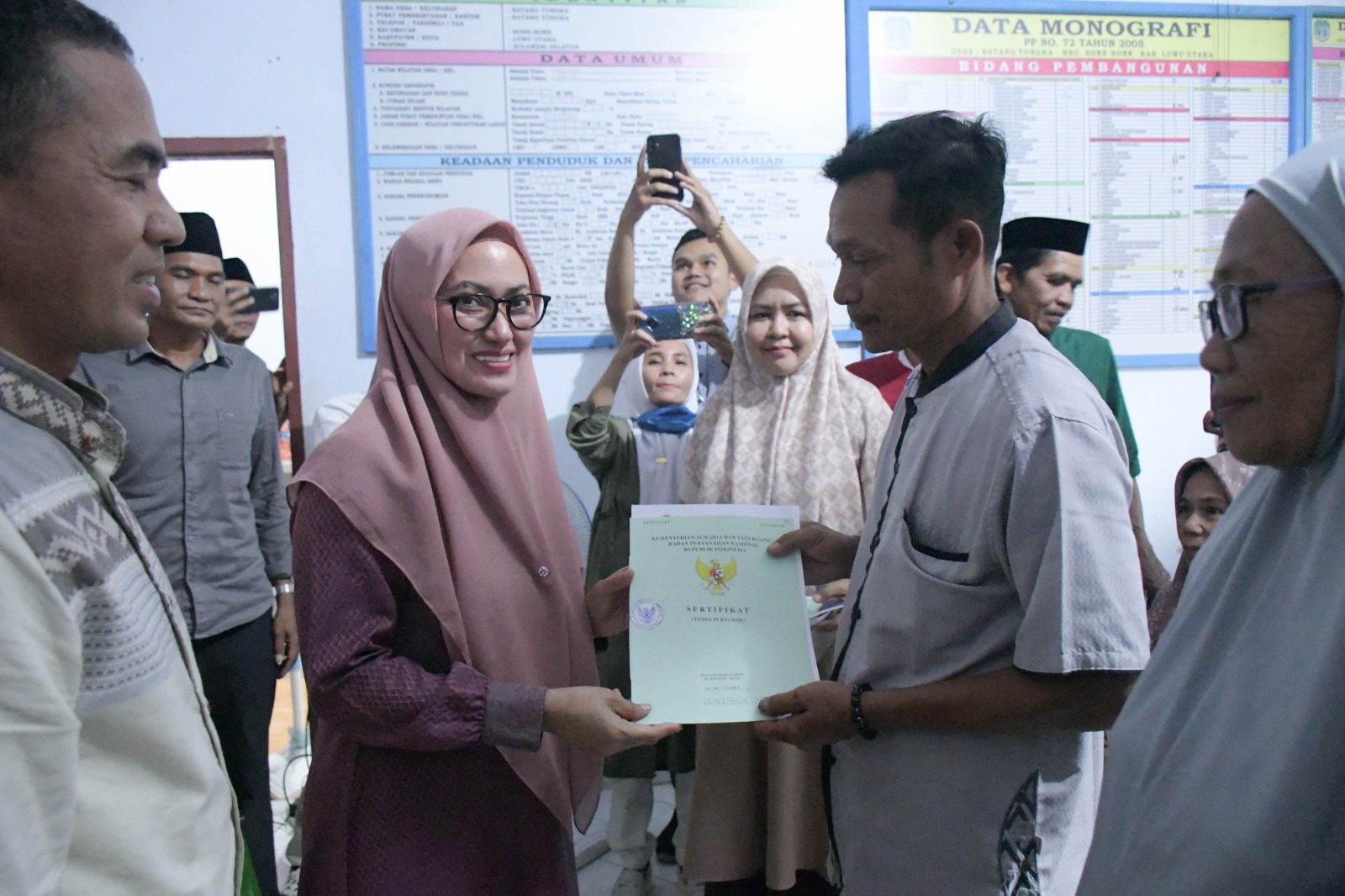 REPUBLIKNEWS.CO.ID,LUWU UTARA — Bupati Luwu Utara Indah Putri Indriani kembali menyerahkan sertifikat 65 bidang tanah kepada masyarakat Desa Batanng Tongka, Kecamatan Bone-bone. Minggu (02/04/2023)