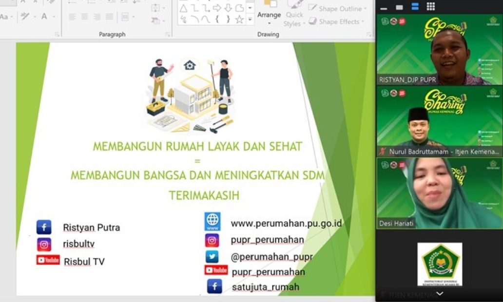 Webinar yang diselenggarakan oleh Inspektorat Jenderal Kementerian Agama tersebut mengangkat tema “Rumah Layak Huni dan Sehat Untuk Masyarakat”.