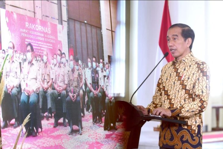 “Rencana Induk Penanggulangan Bencana tahun 2020-2044 harus dilaksanakan dengan penuh komitmen, penuh tanggung jawab. Semua tahapan harus dilaksanakan secara disiplin dan konsisten,” ucap Presiden, dalam sambutannya secara virtual pada peresmian pembukaan Rapat Koordinasi Nasional Penanggulangan Bencana 2022 di Istana Kepresidenan Bogor, Rabu (23/02/2022).