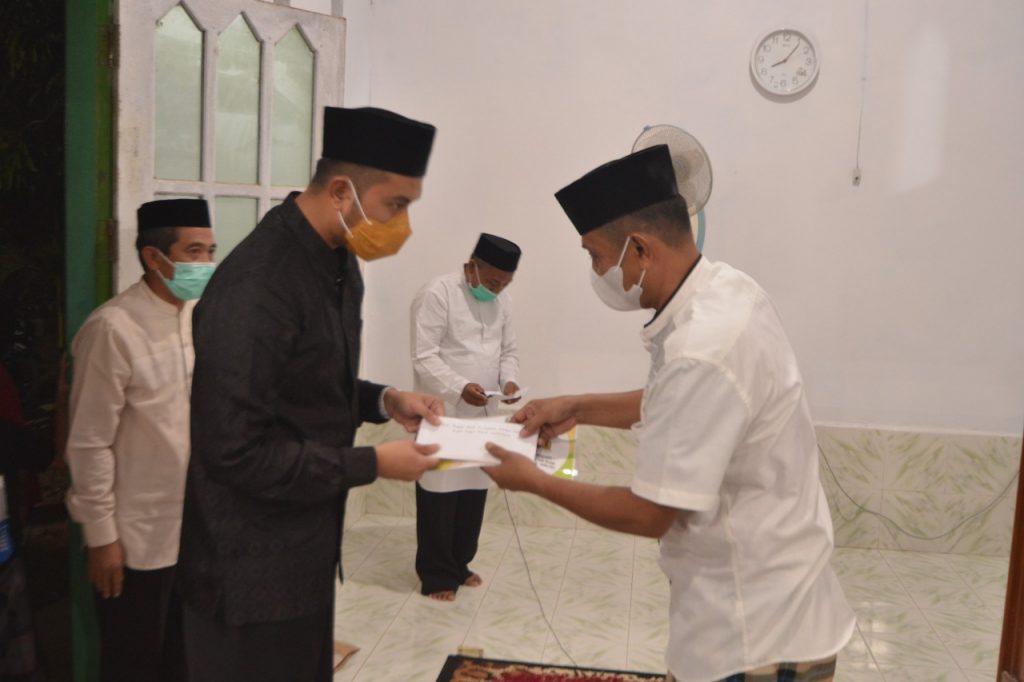 Bantuan keagamaan tersebut diterima langsung oleh pengurus masjid Ar-Ruum disaksikan para jemaah dan warga setempat.
