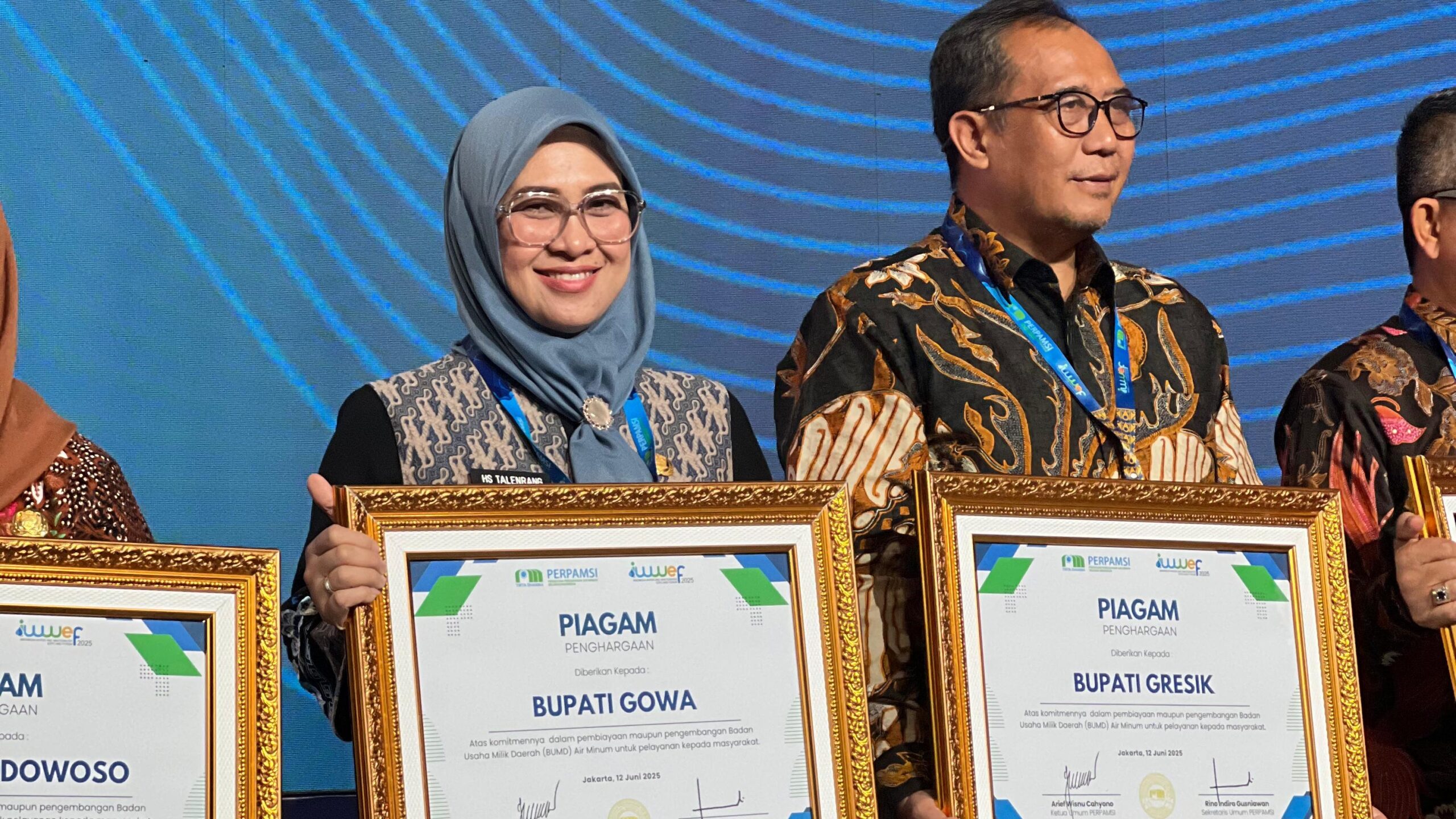 REPUBLIKNEWS.CO.ID, GOWA — Bupati Gowa, Sitti Husniah Talenrang berhasil menerima penghargaan dari Persatuan Perusahaan Air Minum Seluruh Indonesia (PERPAMSI) pada Indonesia Water & Wastewater Expo and Forum (IWWEF) 2025. Penghargaan diserahkan langsung Wakil Menteri Dalam Negeri, Bima Arya Sugiarto.