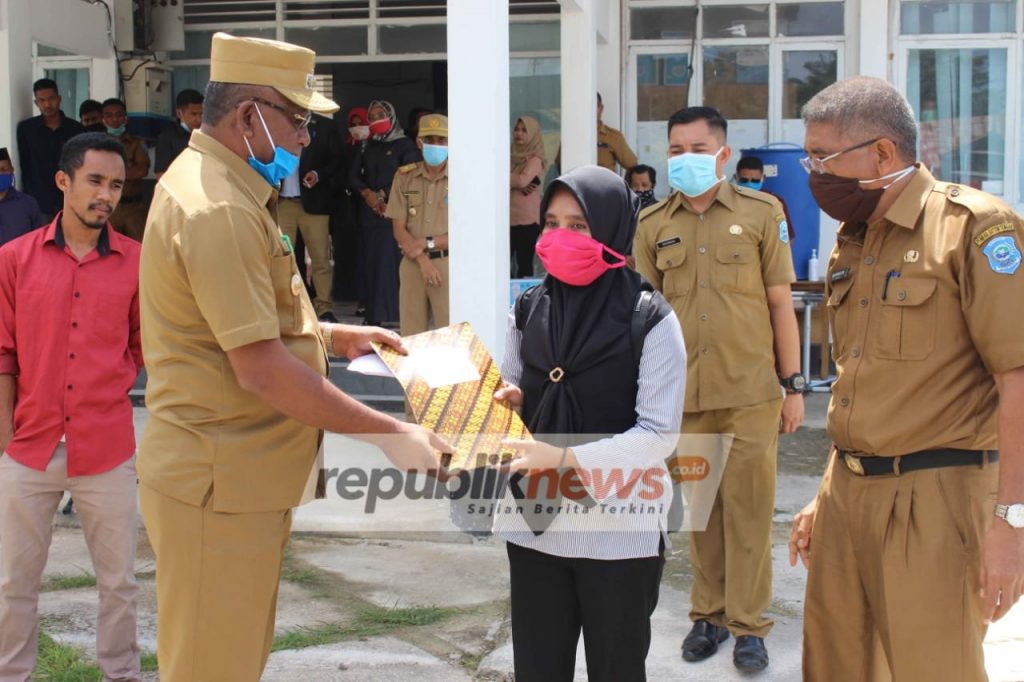 “Saya doakan mudah-mudahan rumah tanggamu kedepan lebih baik lagi. Terima cobaan yang ada dengan lapang dada nanti tuhan yang balas dan memberikan rejekimu untuk kesejahteraan keluargamu,” tutur Samahuddin, saat memberikan SK kepada Marfuah.