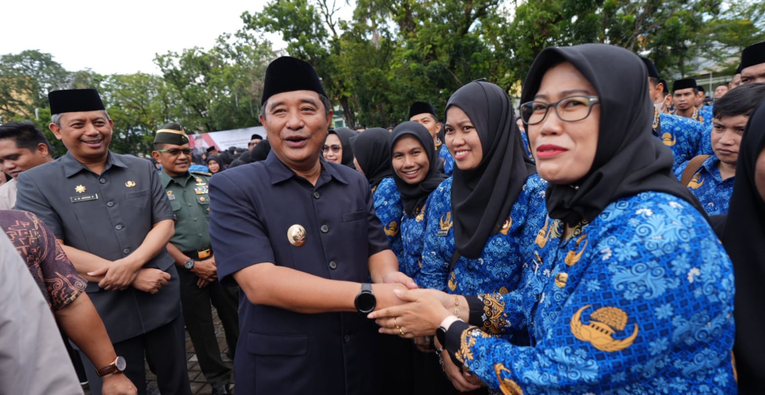 Penjabat Gubernur Sulsel Bahtiar Baharuddin menyampaikan selamat kepada seluruh PPPK lingkup Pemprov Sulsel yang per hari ini menerima SK sebagai Aparatur Sipil Negara (ASN).