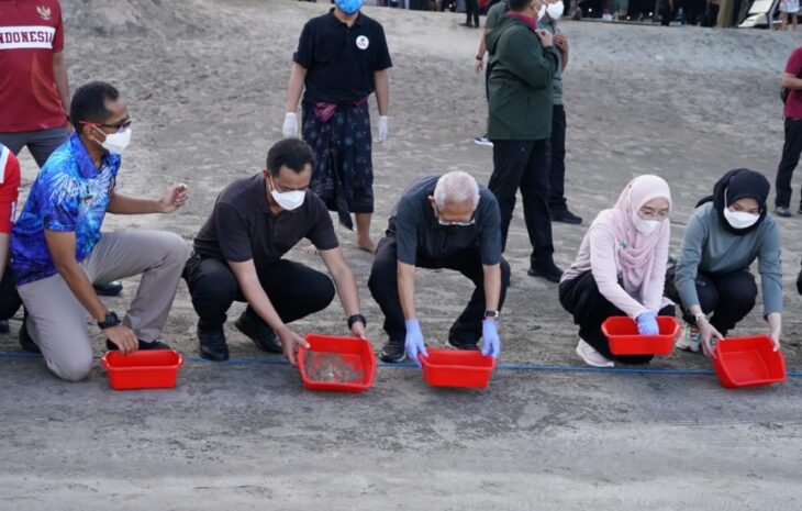 REPUBLIKNEWS.CO.ID, BALI — Wakil Presiden (Wapres) K.H. Ma’ruf Amin beserta Ibu Hj. Wury Ma’ruf Amin melakukan pelepasan anak penyu atau Tukik di Pantai Kuta yang terletak di Belakang Kuta Beach Sea Turtle Conservation Center (KBSTCC), Kabupaten Badung, Bali, Selasa (10/05/2022).