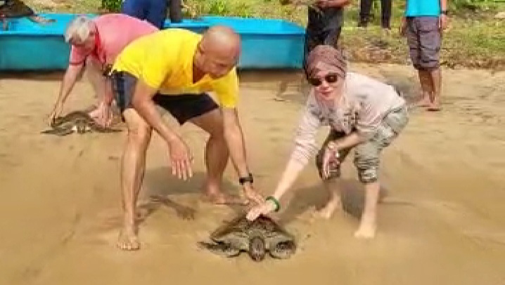 Beberapa waktu yang lalu, ia juga menyempatkan diri melepaskan ratusan anak penyu disebuah pantai di daerah Jakarta Utara.