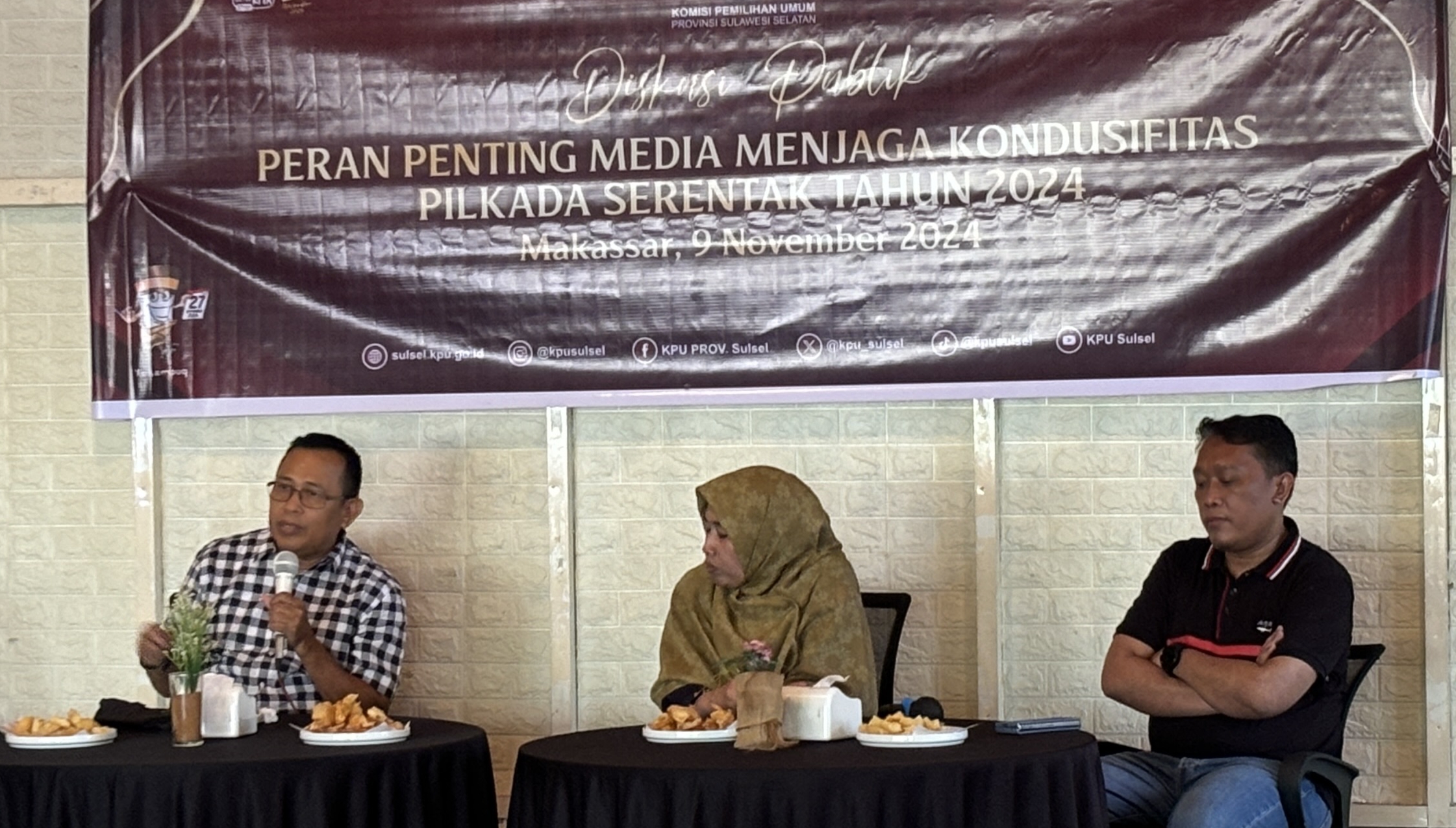 Hadir sebagai pembicara masing-masing Pemimpin Redaksi Harian Ujung Pandang Ekspres, Silahuddin Genda, serta Direktur Harian Fajar, Faisal Palapa. Acara diskusi publik ini dipandu oleh Kepala Sub Bagian Sosialisasi, Pendidikan Pemilih, dan Partisipasi Masyarakat KPU Sulsel, Sahyra Ahniza.