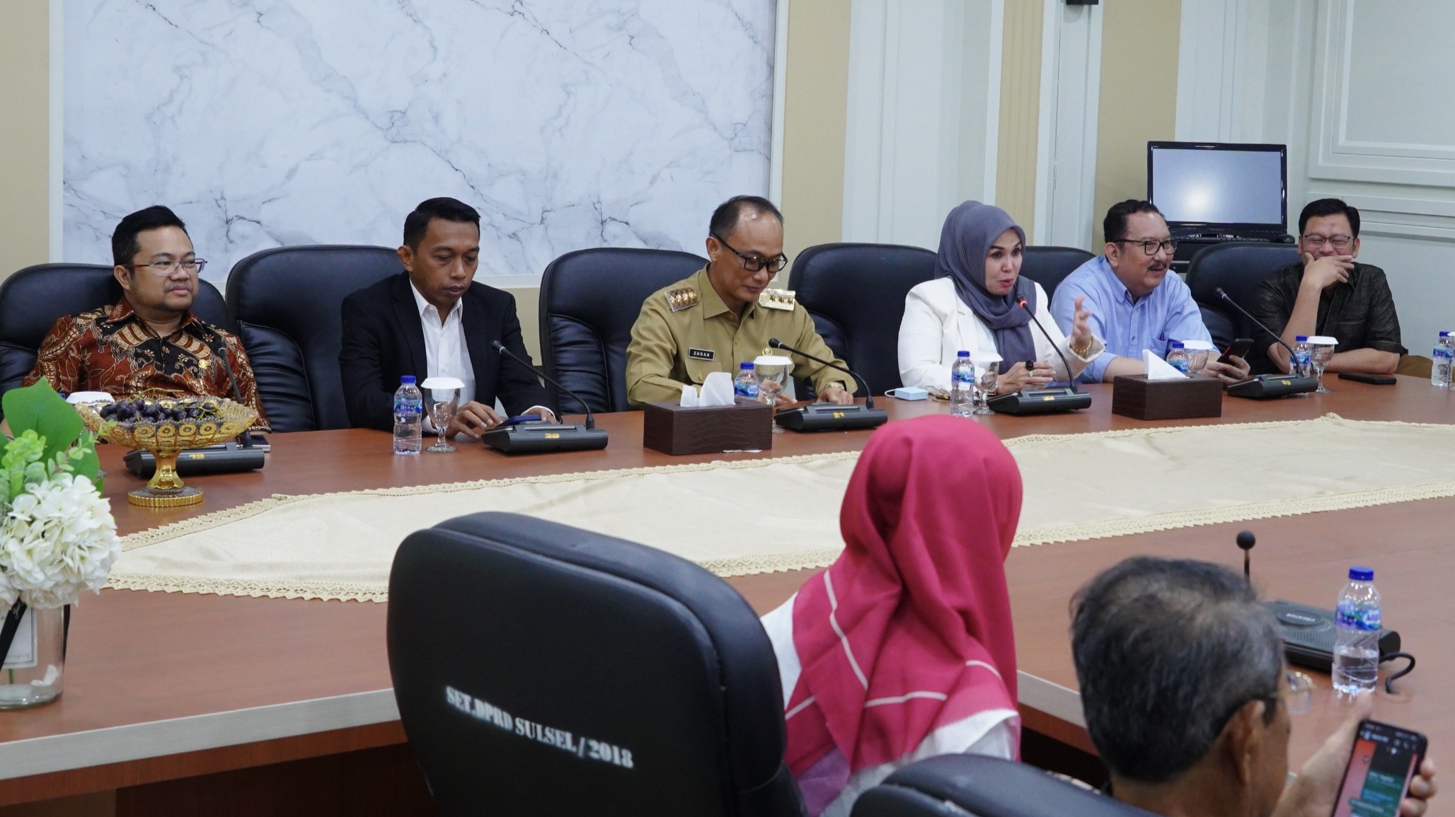 Prof Zudan disambut langsung oleh Ketua DPRD Sulsel, Andi Ina Kartika Sari bersama empat wakil ketua, masing-masing Syaharuddin Alrif, Muzayyin Arif, Darmawangsyah Muin dan Ni’matullah Erbe.