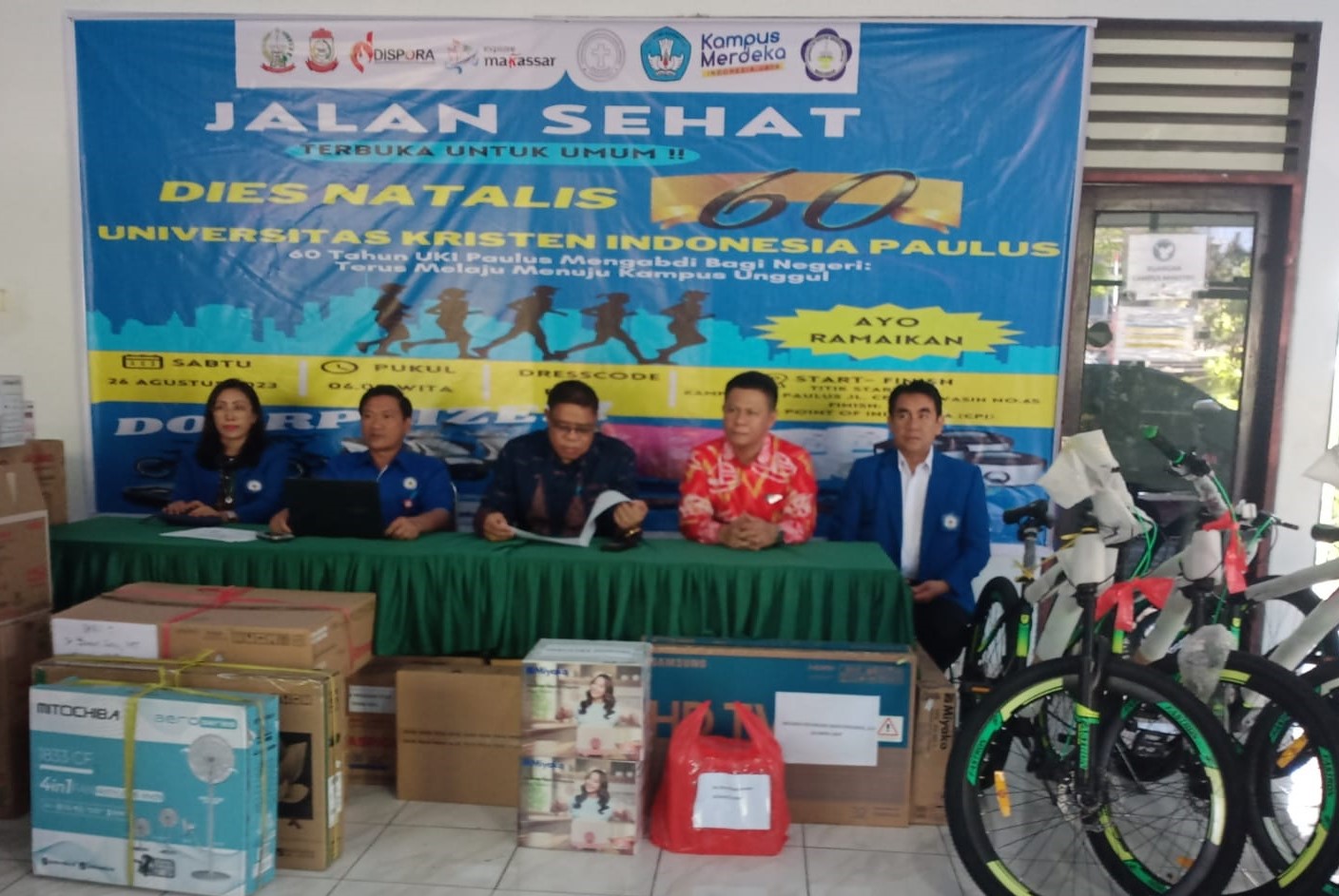 Lanjut Prof Agus, jalan santai ini nantinya akan dimulai sekitar pukul 06.00 Wita dengan mengambil lokasi star di Kampus Lama UKI Paulus. Pada kegiatan ini juga disiapkan sejumlah doorprize dengan hadiah utama sepeda listrik, kemudian hadiah pendukung lainnya. Seperti, sepeda manual, kompor gas, kulkas dan hadiah menarik lainnya.