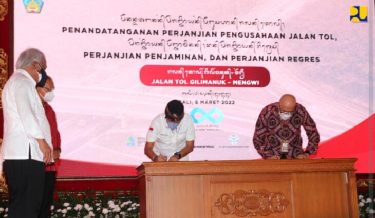 Penandatanganan ini dilakukan oleh Menteri PUPR Basuki Hadimuljono, Kepala Badan Pengatur Jalan Tol (BPJT) Danang Parikesit, Direktur Utama PT PII M. Wahid Sutopo serta Direktur Utama PT Tol Jagat Kerthi Bali Tito Sulistio.