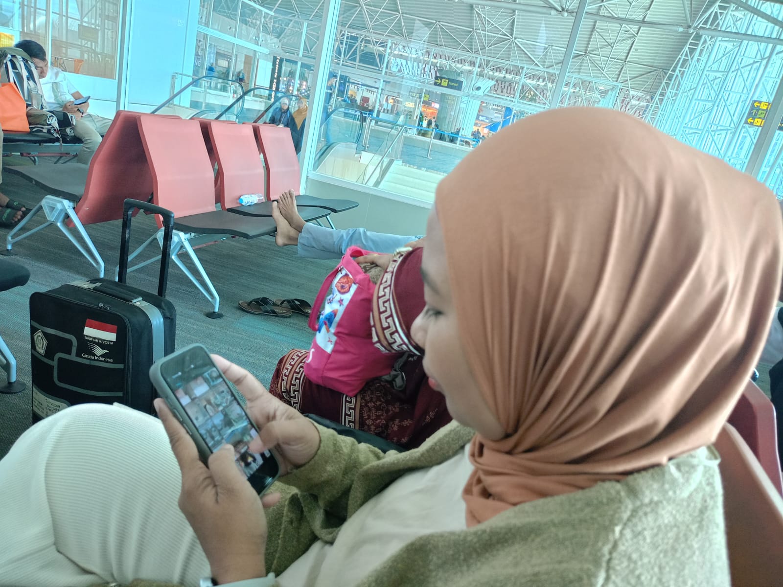 REPUBLIKNEWS.CO.ID, MAKASSAR — Seorang perempuan duduk tenang di kursi metal berlapis kulit hitam. Di antara hiruk pikuk penumpang di Gate 6, Bandara Internasional Sultan Hasanuddin, tidak mempengaruhi konsentrasinya memainkan ponsel pintarnya.
