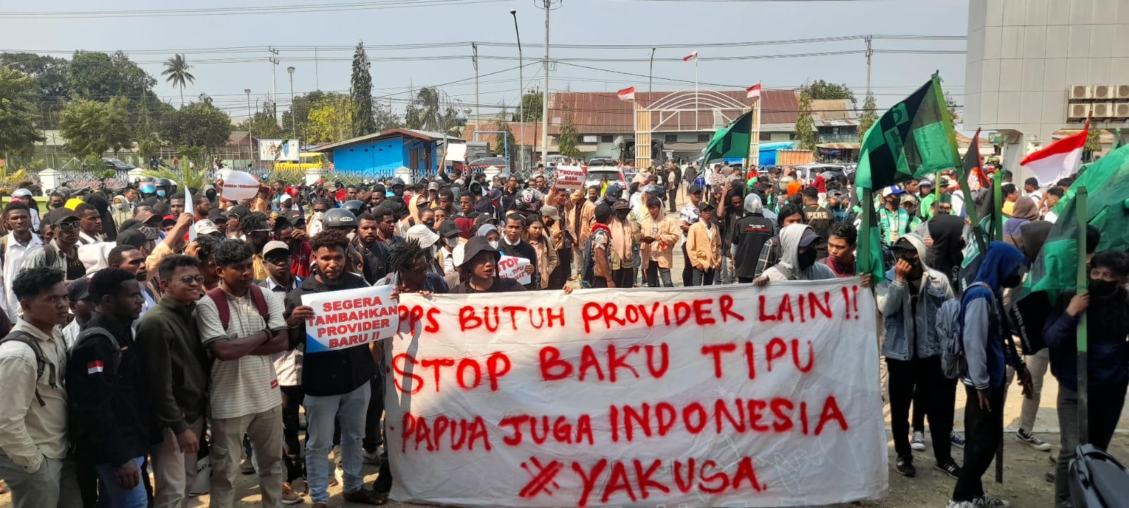 Di Gedung DPRD Merauke, massa yang dipimpin oleh Aktivis Andarias Labobar selaku jenderal lapangan mengeluhkan masalah gangguan jaringan internet di hadapan anggota dewan menyampaikan tuntutan kepada PT. Telkomsel selaku provider tunggal atau penyedia layanan internet di seluruh Papua untuk segera melakukan pembenahan kerusakan instalasi jaringan yang telah berdampak kerugian pada kehidupan seluruh masyarakat di Merauke.