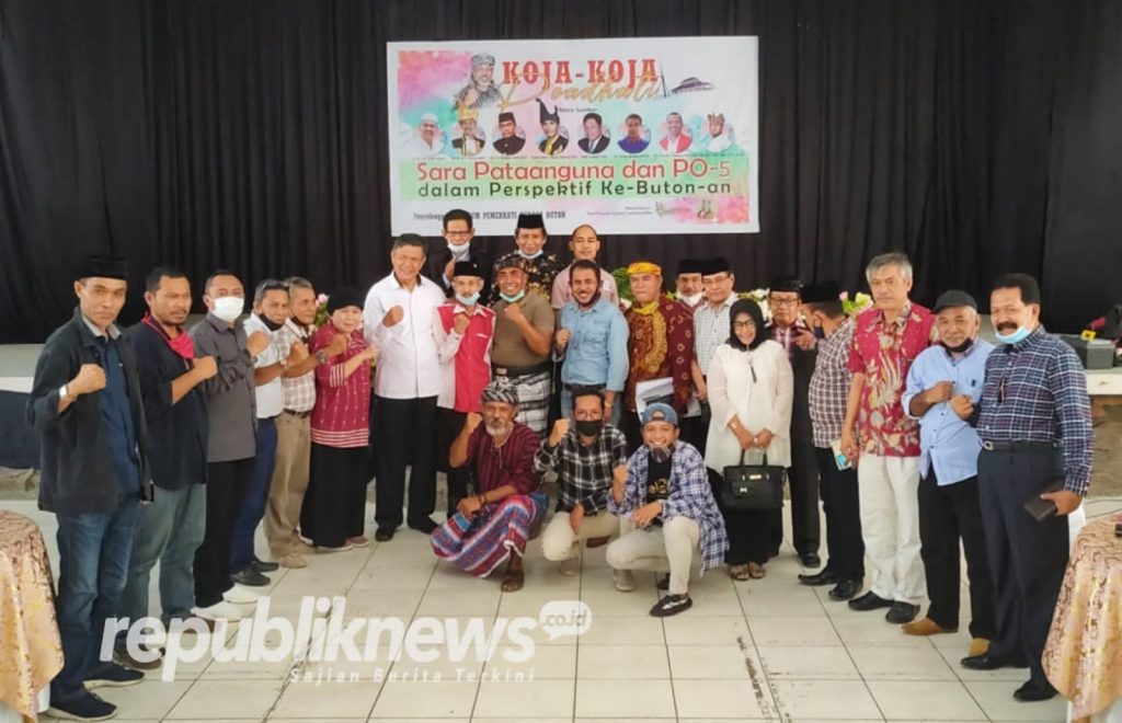 REPUBLIKNEWS.CO.ID, Baubau – Forum Pemerhati Budaya Buton (FPBB) kembali menggelar kegiatan diskusi “Koja-koja Poadhati” dengan mengangkat tema “Sara Pataanguna dan Po-5 dalam perspektif Ke-Buton-an” di Gedung Pancasila Kota Baubau, Senin (15/02/2021).