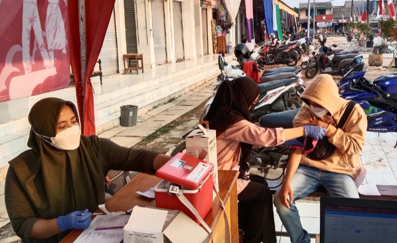 REPUBLIKNEWS.CO.ID, BEKASI — Gerai Vaksinasi Booster Bulan Ramadhan untuk gerai 35 Polsek Bekasi Utara dilaksanakan di Pasar Seroja. Gerai vaksin 35 diperuntukkan untuk pedagang dan pengunjung Pasar Seroja dengan menyiapkan dosis sebanyak 100 orang dengan vaksin jenis Astrazeneca.