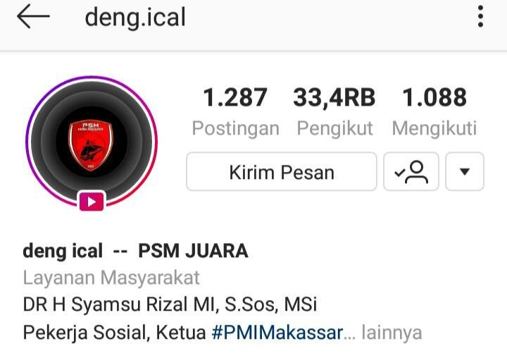 Dibawah profilnya juga tertulis sebuah kalimat ‘deng ical — PSM Juara’.