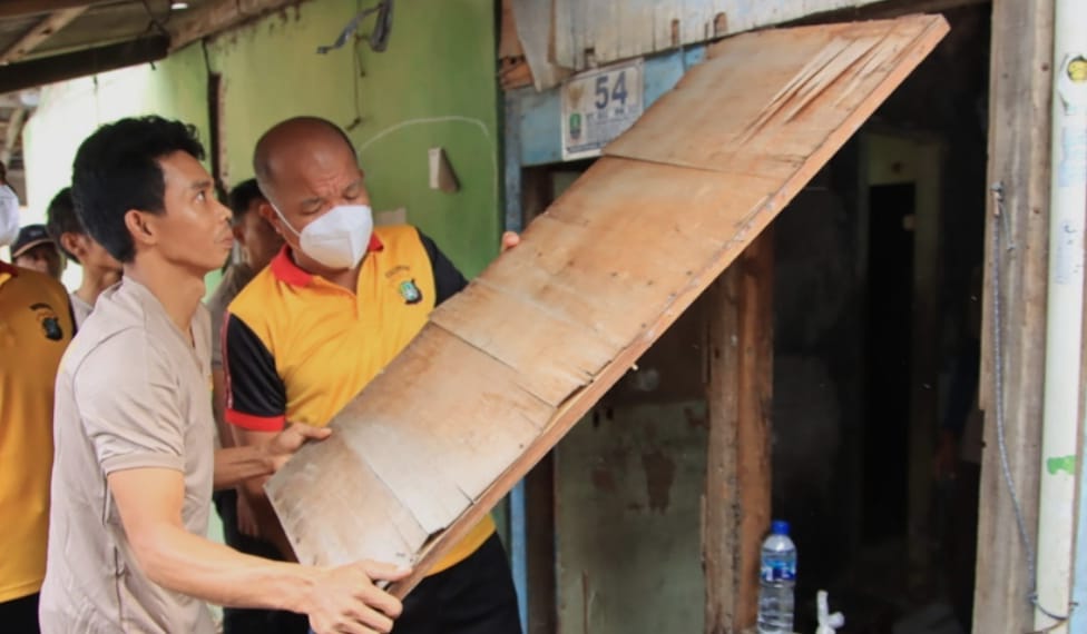 Salah satunya kegiatannya antara lain program bedah rumah yang diinisiasi Kapolres Metro Bekasi Kota Kombes Pol Hengki Haryadi. Kali ini, tim melaksanakannya di kediaman Ibu Asih, RT 02/RW 02, Kelurahan Margamulya, Bekasi Utara, Kota Bekasi