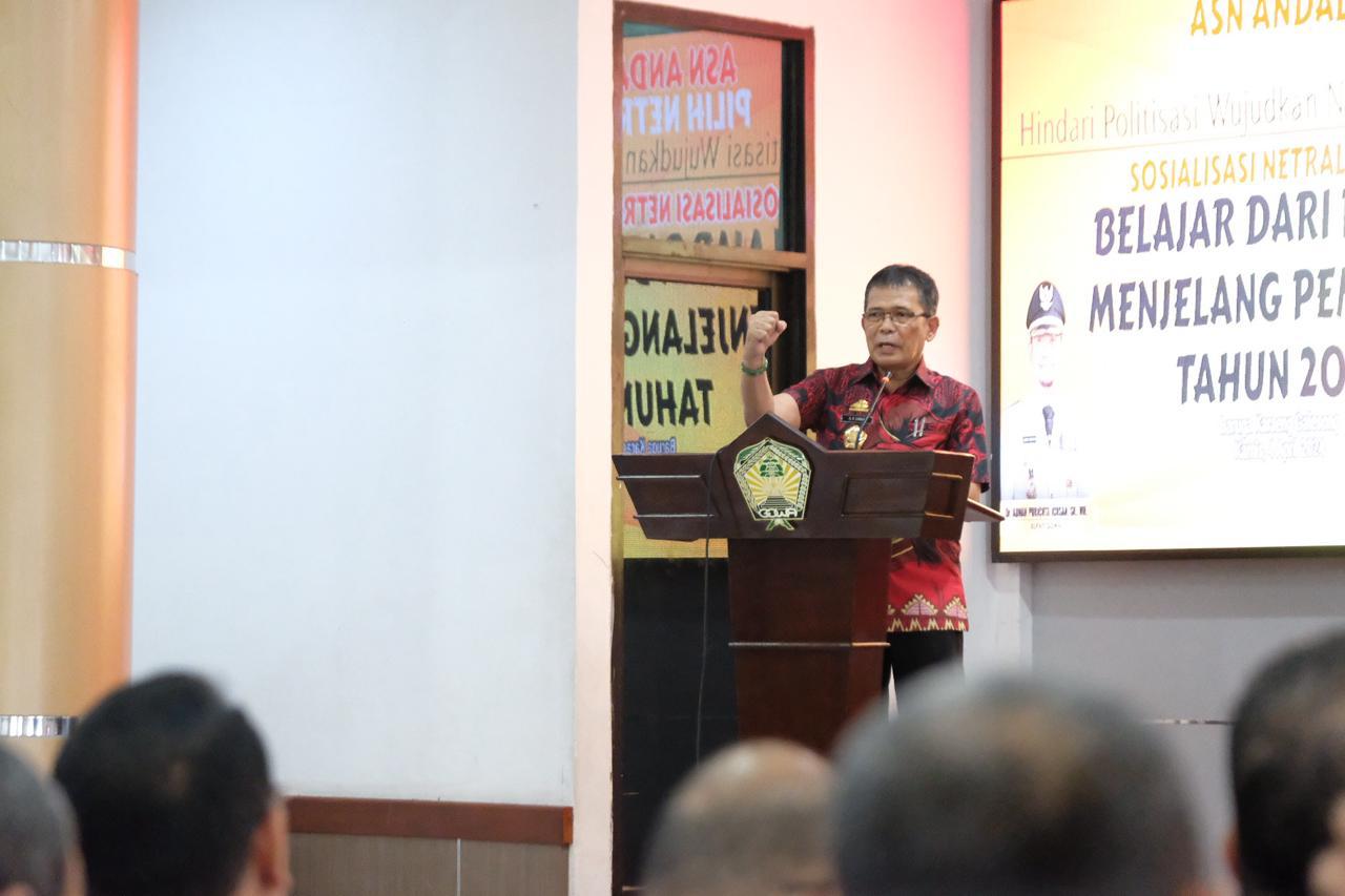 “Ingat selalu netral, pahami apa yang boleh dan tidak boleh dilakukan oleh seorang ASN. Kalau kita memilih berkarier sebagai PNS kita tidak boleh berkarier dalam dunia politik juga,” tuturnya.