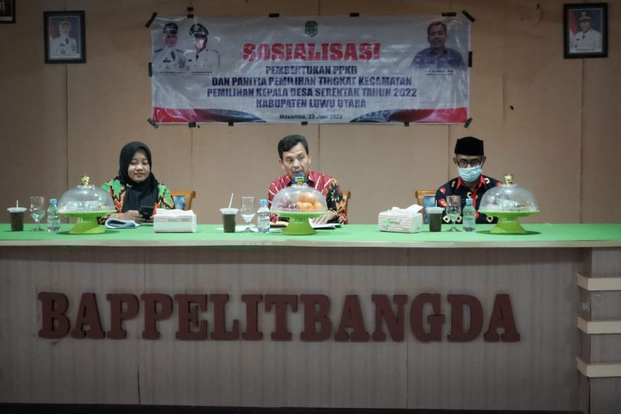 REPUBLIKNEWS.CO.ID,MASAMBA — Pemerintah Daerah Kabupaten Luwu Utara menggelar sosialisasi Pembentukan Panitia Pemilihan Kepala Desa (PPKD) dan Panitia tingkat Kecamatan di Aula Bappelitbangda Luwu Utara. Kamis (23/06/2022)
