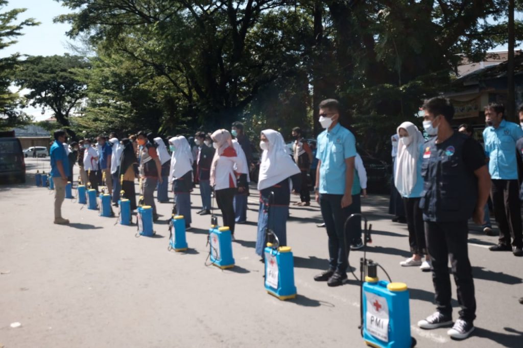 Pada apel ini, PMI Sulsel turut menyerahkan sprayer dan bahan desinfektan, baju hazmat, dan paket Perilaku Hidup Bersih dan Sehat (PHBS) masing-masing 5 paket kepada seluruh OKP melalui perwakilan. (Rhany)