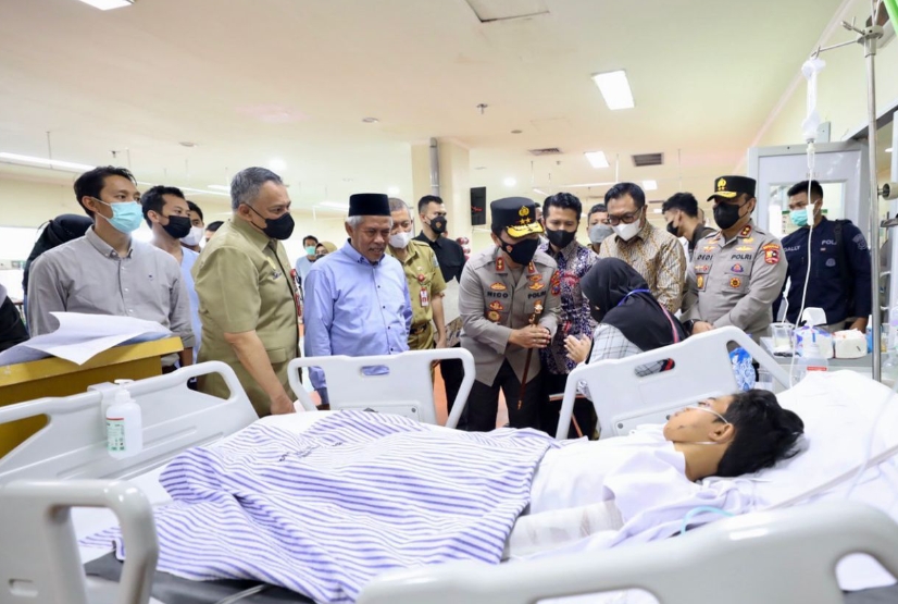 REPUBLIKNEWS.CO.ID, MALANG- Tragedi sepak bola stadion Kanjuruhan mengakibatkan ratusan korban meninggal dunia dan dirawat di rumah sakit. Beberapa pasien bahkan ada yang sampai masuk ICU, dan banyak juga yang rawat jalan , sembuh dan sudah di pulangkan. Kadiv Humas Polri bersama Kapolda Jawa Timur dan Wakil Gubernur Jawa Timur serta Ketua PWNU dengan Direktur Rumah Sakit Saiful Anwar meninjau Aremania yang sedang dirawat, pada Selasa (4/10/2022).
