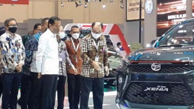 Selanjutnya Presiden Jokowi juga mengunjungi booth Nissan, Wuling, Daihatsu dan Mazda.