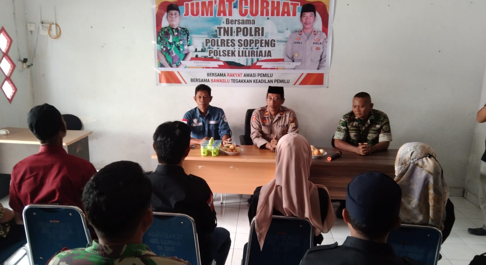 REPUBLIKNEWS.CO.ID, SOPPENG — Bersama TNI/Polri, Kapolsek dan Danramil Kecamatan Liliriaja, Kabupaten Soppeng, Sulawesi Selatan, menggelar Jumat curhat di Sekretariat Panwaslu Kecamatan Liliriaja, Jumat (05/05/2023).