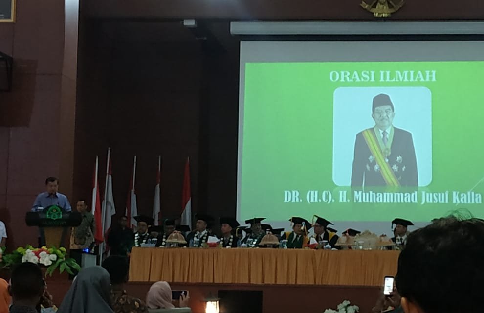 Sedangkan, mantan Wakil Presiden Dua Periode Jusuf Kalla (JK), yang hadir pada kesempatan tersebut, dalam orasi ilmiahnya mengungkapkan sejarah singkat lahirnya UIN Makassar.