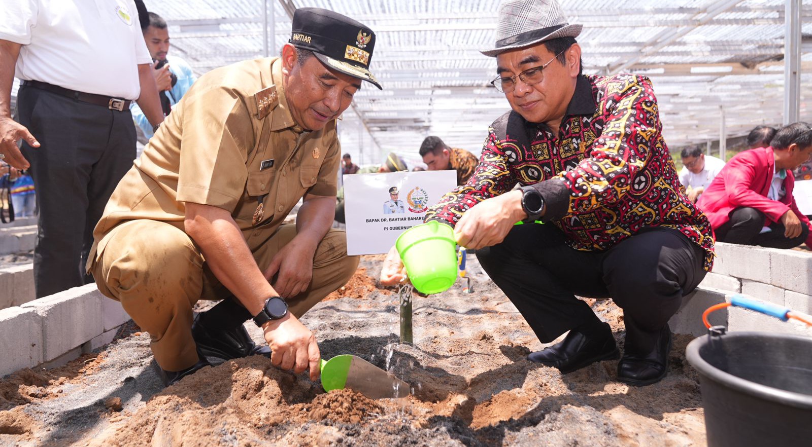 REPUBLIKNEWS.CO.ID, MAKASSAR — Penjabat Gubernur Sulsel, Bahtiar Baharuddin, bersama Rektor Universitas Hasanuddin (Unhas) Prof Jamaluddin Jompa, dan Ketua Forum CSR Sulsel Latunreng, melakukan Launching Berjuta Bibit Pisang Cavendish, di Pusat Pembibitan Pisang Unhas, Kamis (16/11/2023).